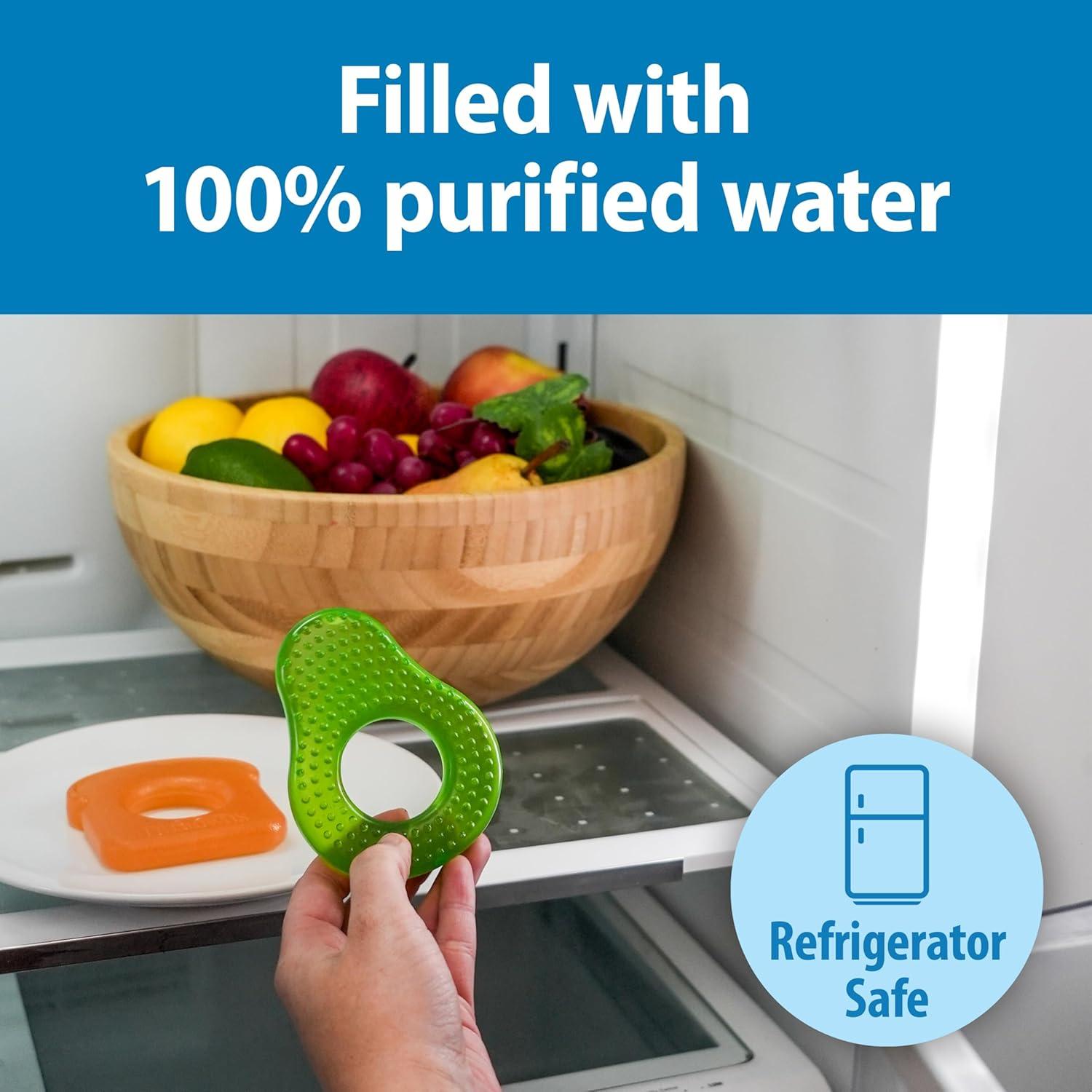 Dr. Brown’s AquaCool Water-Filled Teether, Cooling Teether Toy for Babies, Soothes Sore Gums, Avocado Toast Shapes, BPA Free, 3m+, 2-Pack(AquaCool Fruits)