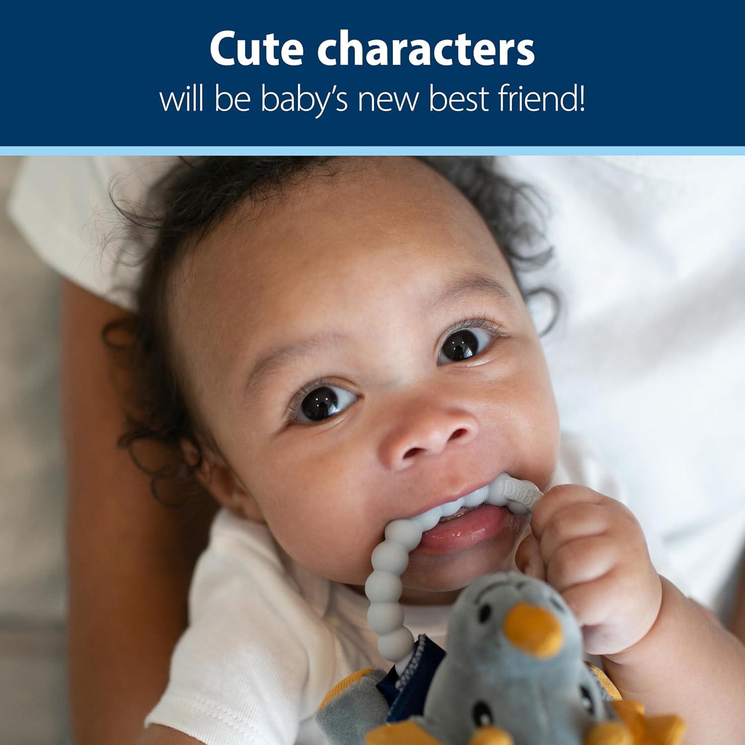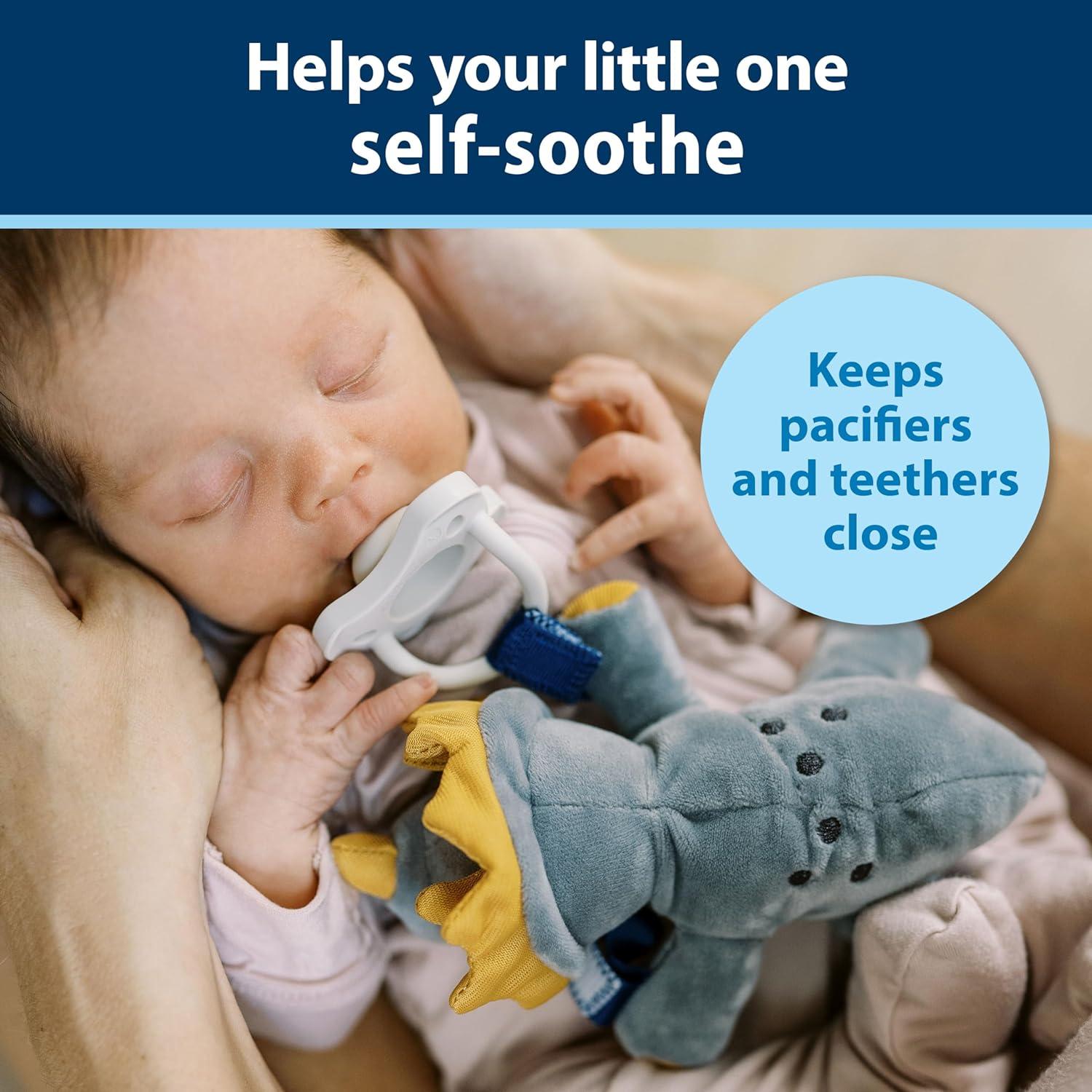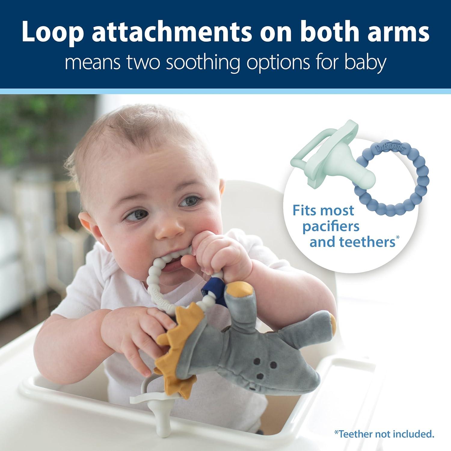 DOUBLE THE FUN. Attachments on both Lovey arms provide options for more than one teether or pacifier, or one of each, making it easier for baby to find and choose what they need to self-soothe.