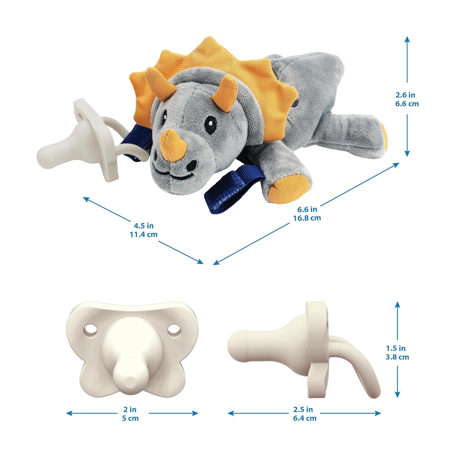 Dr. Brown's Baby Lovey Pacifier and Teether Holder, Deer with Pink HappyPaci, 100% Silicone, 0-6m (Packaging May Vary)(Triceratops)
