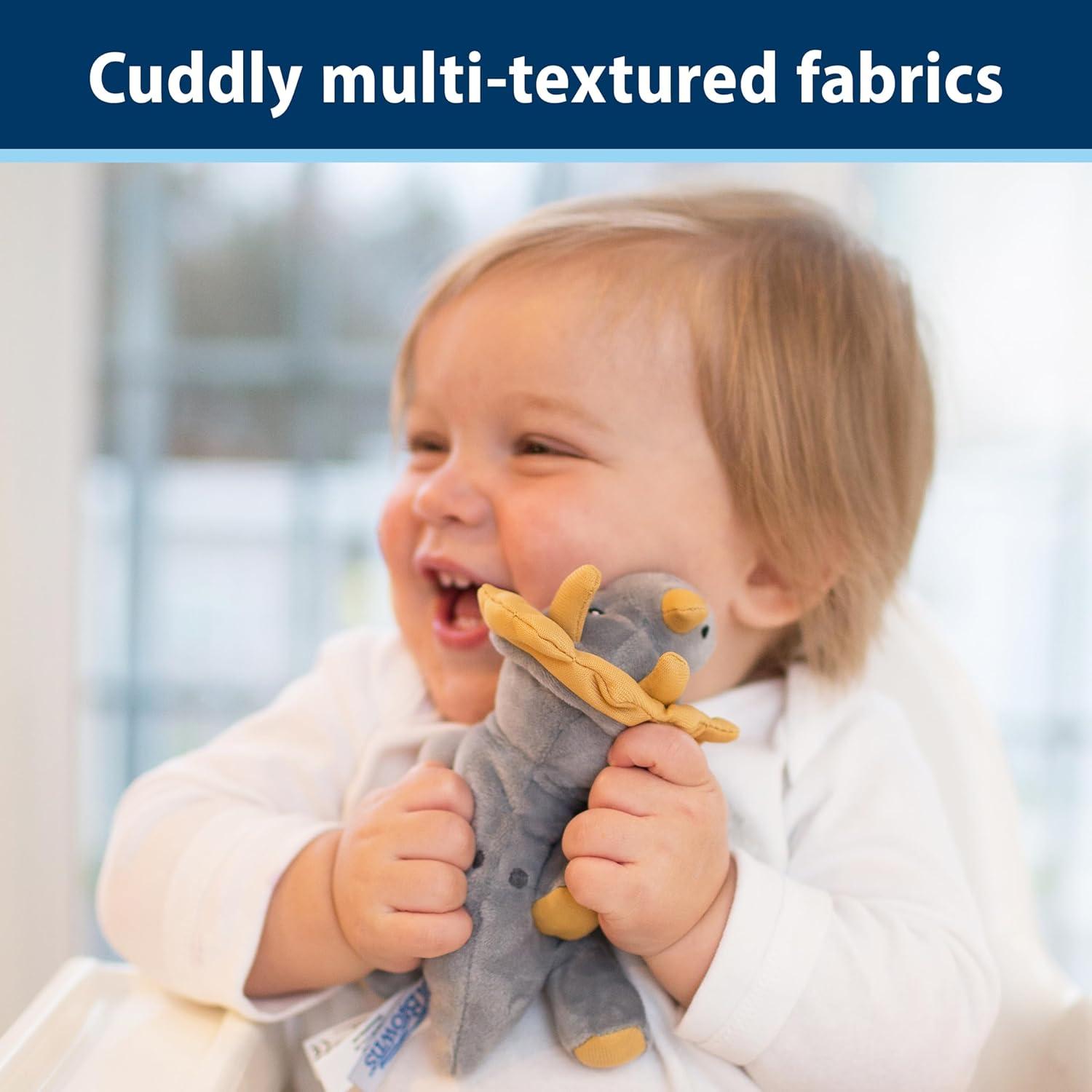 SOOTHE AND STIMULATE. The Lovey stuffed animal features soft, multi-textured materials to keep exploring fingers happy.
