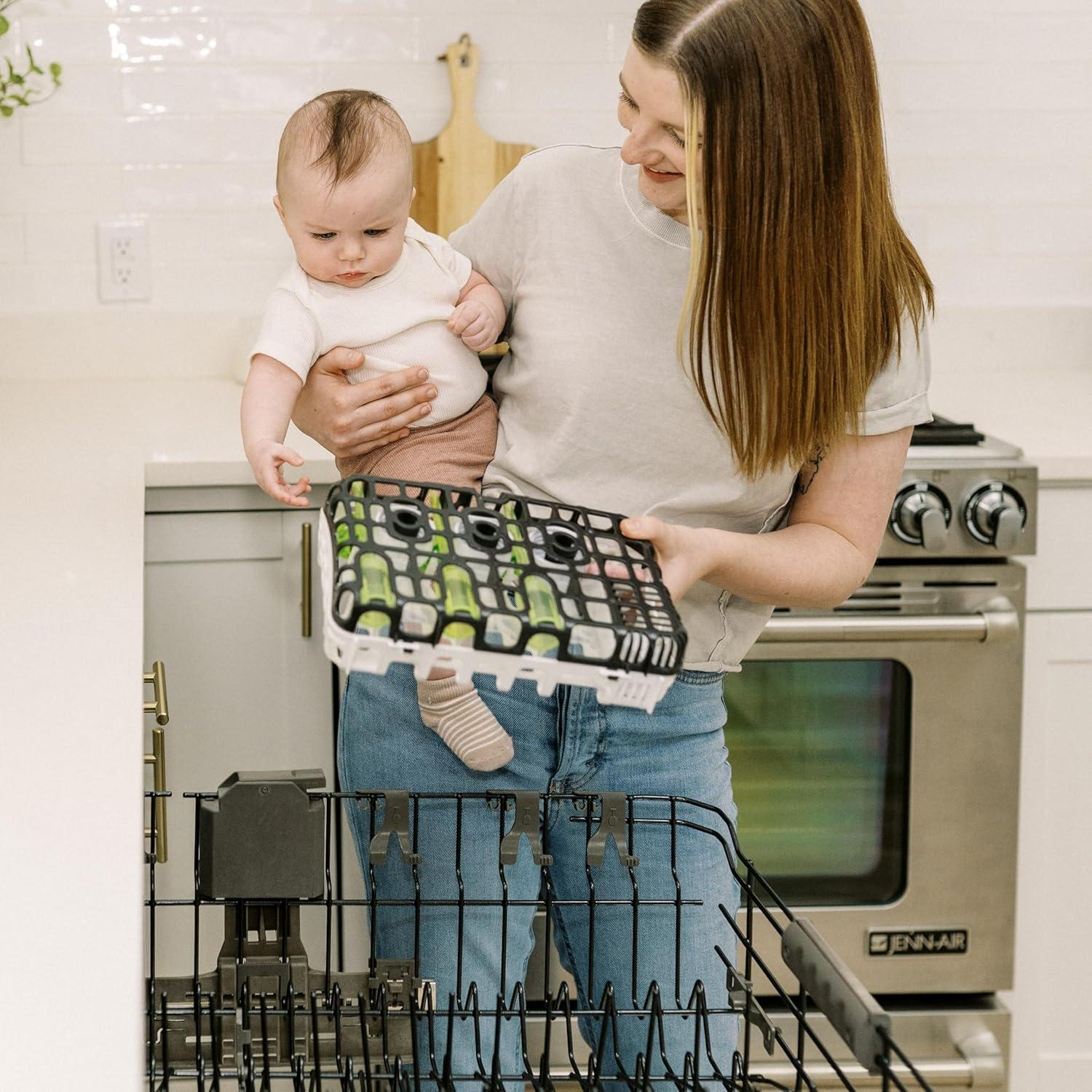 BABY BOTTLE PARTS DISHWASHER BASKET. Clean vents, valves, bottle nipples, travel caps, and other baby essentials quickly.