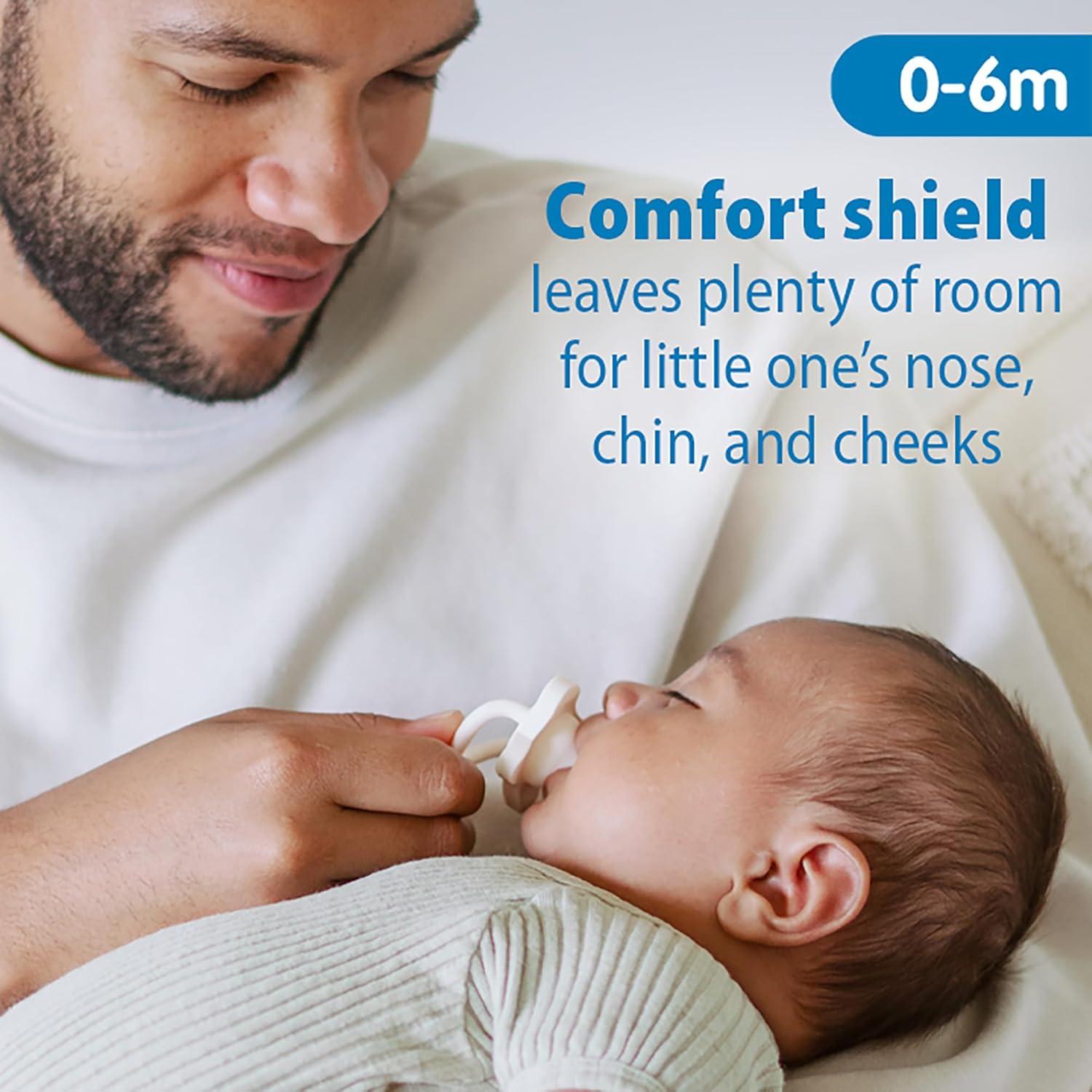 SILICONE BABY PACIFIER. Soothe baby with lightweight and soft 100% silicone pacifier. Designed for babies 0-6 months.